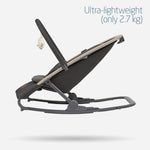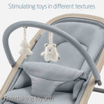 The Kori Eco is designed for versatility, allowing your baby to rock, play, sit, or relax in style. Its super-padded newborn inlay and three recline positions create a cozy, safe space for your baby to unwind or play while you enjoy some hands-free time. The gentle swaying motion of the rocker is soothing, especially for newborns, as it mimics the comforting movement of the womb and can help calm colic. When it's time to digest after a feed, simply switch to stationary mode for added comfort.